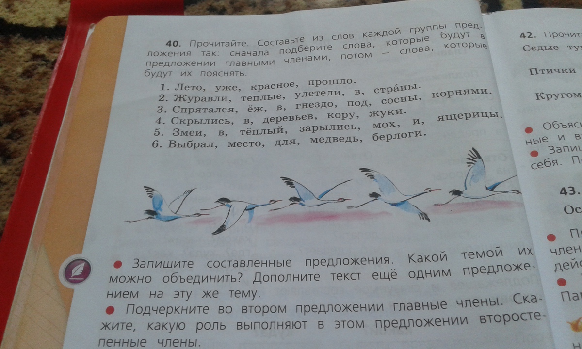 Прошло лето красное уже.улетели журавли в теплые страны.спрятался еж в гнездо под корнями сосны .скрылись жуки в кору деревьев .змеи и ящерицы зарылись в теплый мох.медведь выбрал место для берлоги .