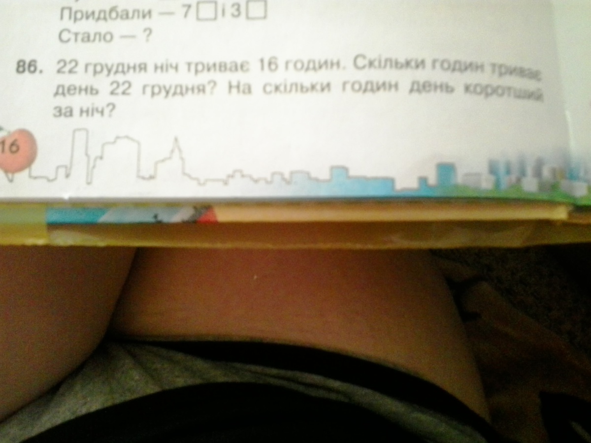 22 грудня ніч триває 16 годин.Скільки годин триває день 22 грудня?На скільки годин день коротший за ніч?