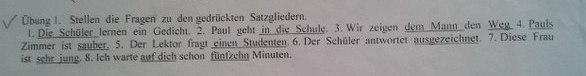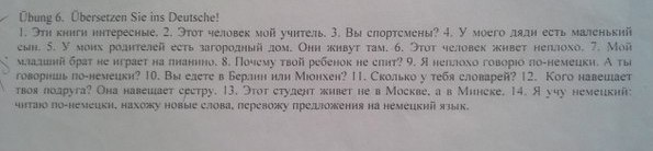 помогите пожалуйста с дз по немецкому, в 6 задании перевести на немецкий и в 1 составить вопросы на выделенные слова.