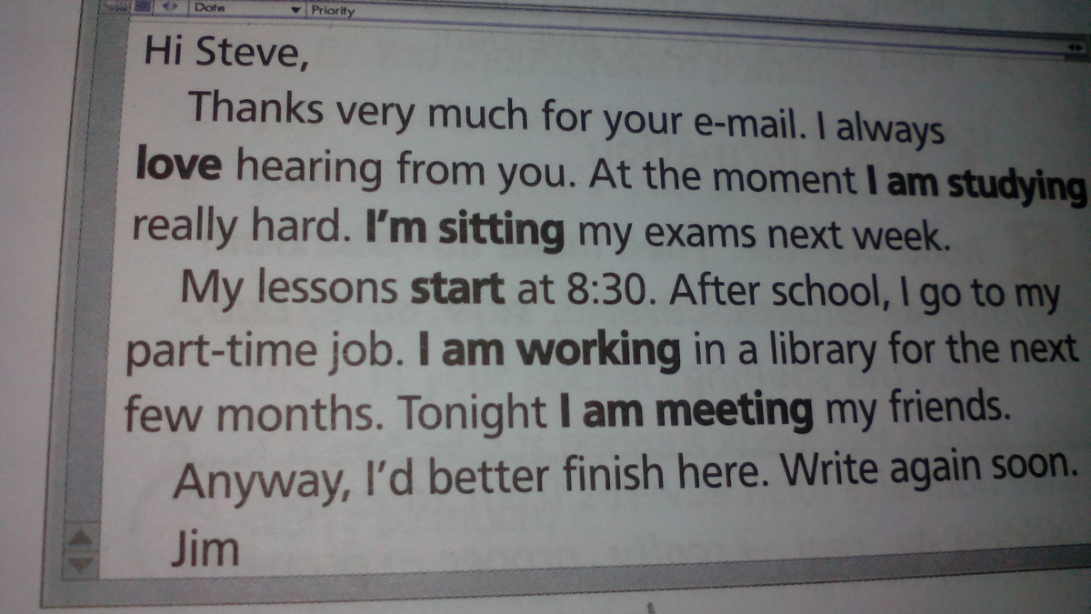Большое спасибо за твоё письмо. Я всегда, люблю слушать (читать твои письма в слух или про себя) тебя. Сейчас я учусь очень усиленно. На следующей неделе у меня будут экзамены.