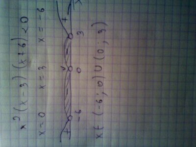 Поскольку " < ", то х ∈ (-6; 0) U (0; 3)