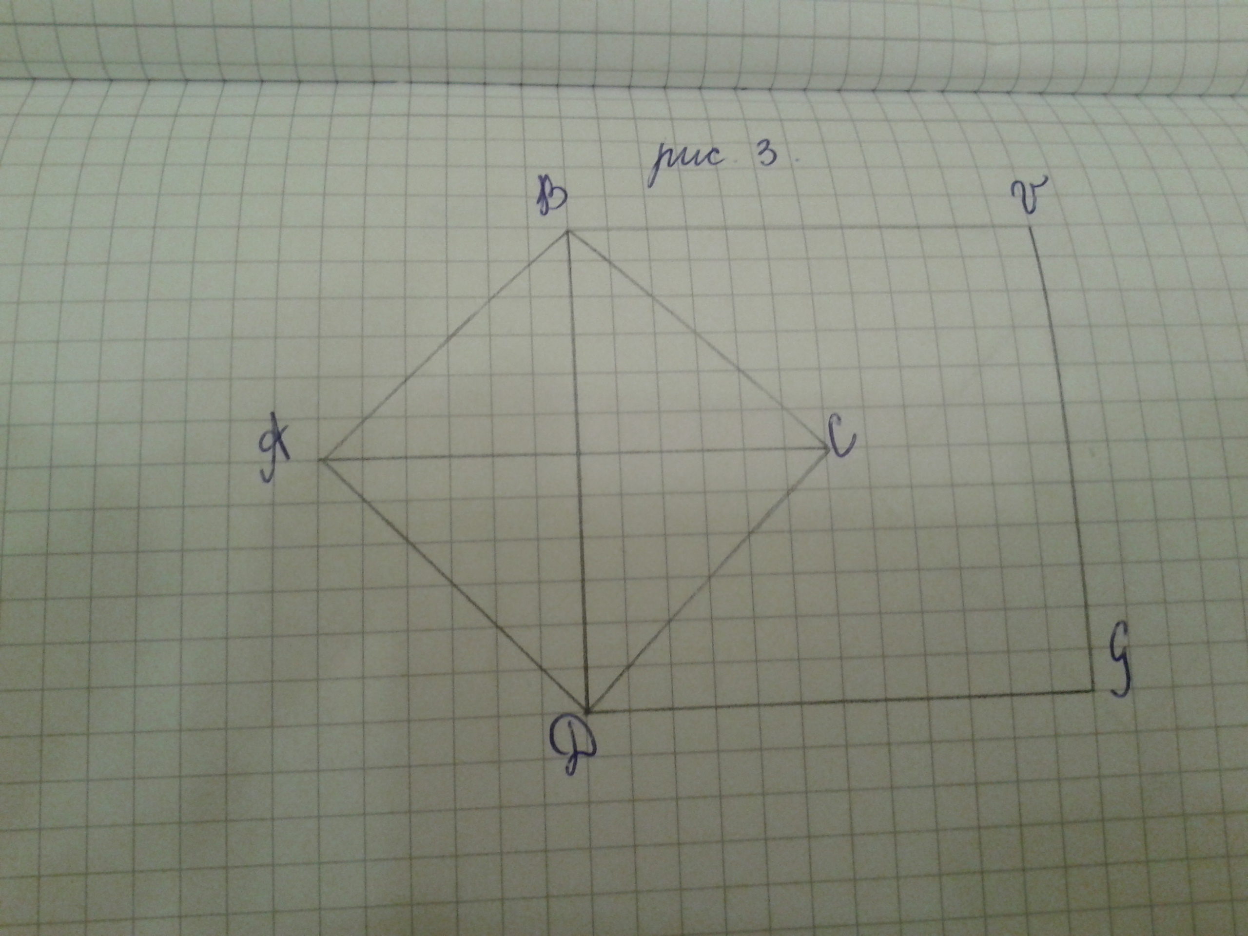 Одна из диагоналей квадрата ABCD (на рисунке BD) - является стороной другого квадрата BVGD. Т.е. диагональ квадрата ABCD и есть сторона другого квадрата BVGD = 6 см. Чертим квадрат BVGD (рис.3).