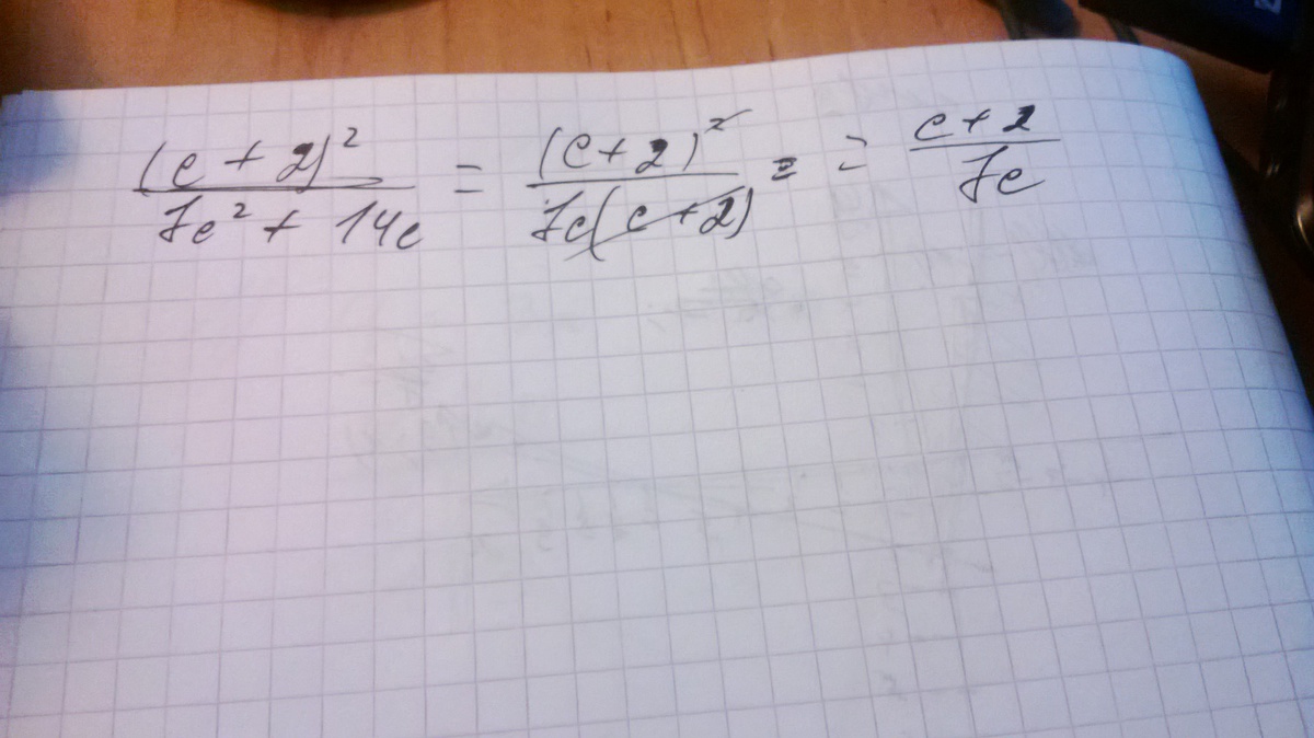 Вроде так решается, чтобы сократить надо чтоб появился знак множителя. Для этого из знаменателя надо вынести 7с , и получается с+2. Дальше просто сократить подобные.