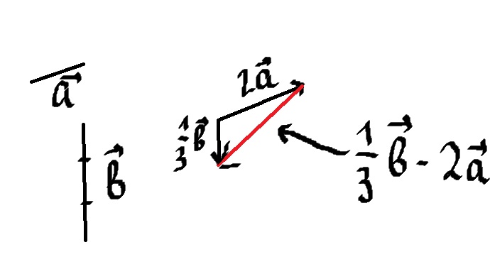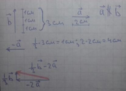Начертить два неколлинеарных вектора a и b,причем длина вектора |a|=2см,|b|=3см.Построить вектор 1/3b-2a