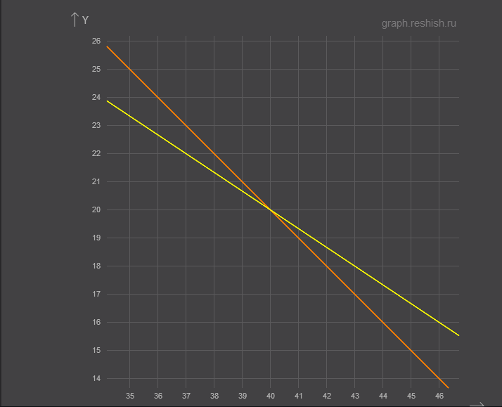 и строим графики этих функций. координаты точки пересечения графиков и будут решениями задачи.