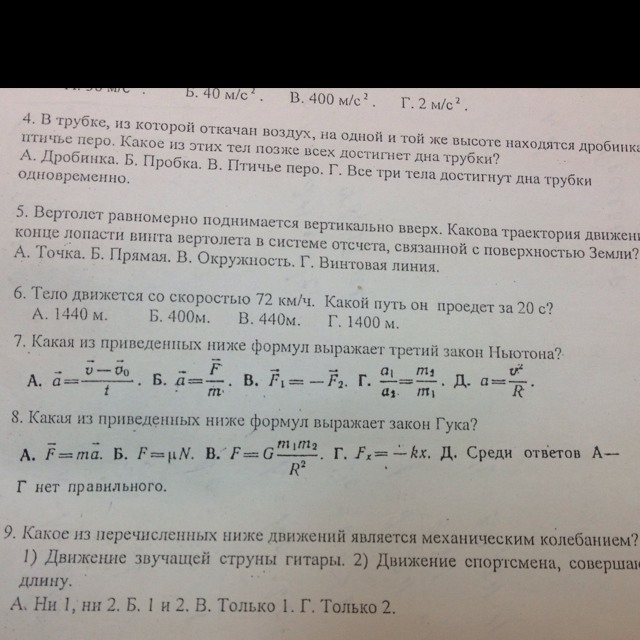 № 8. Закон Гука выражается формулой Fх=-kx., т.е. ответ Г)