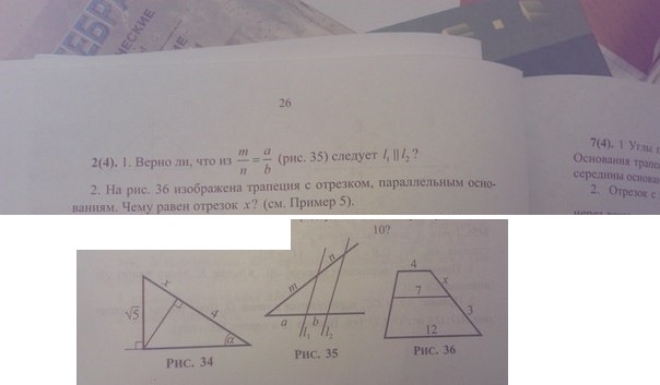 1)Если m/n=a/b,то (m+n)/n=(a+b)/a⇒треугольники подобны⇒соответственные углы равны⇒l1 параллельна l2.