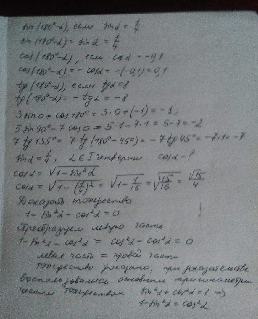 доведіть тотожність 1-sin квадрат альфа- cos квадрат альфа=0