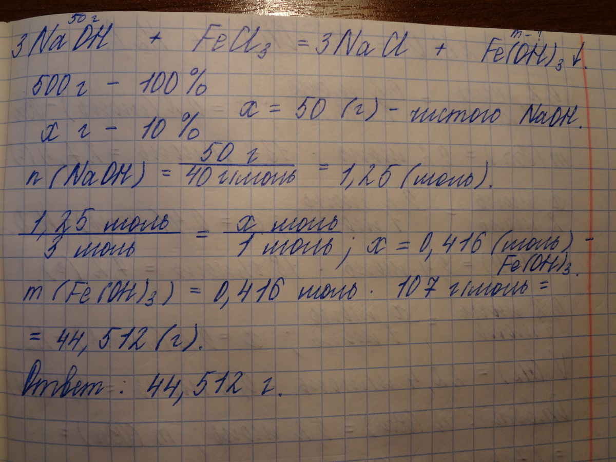 взаимодействии 500г 10% раствора гидроксида натрия с избытком раствора хлорида