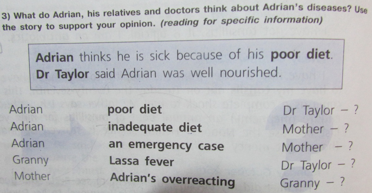 1. Adrian poor diet Dr Taylor - ?(Адриан плохое питание Доктор Тайлер - ?)
