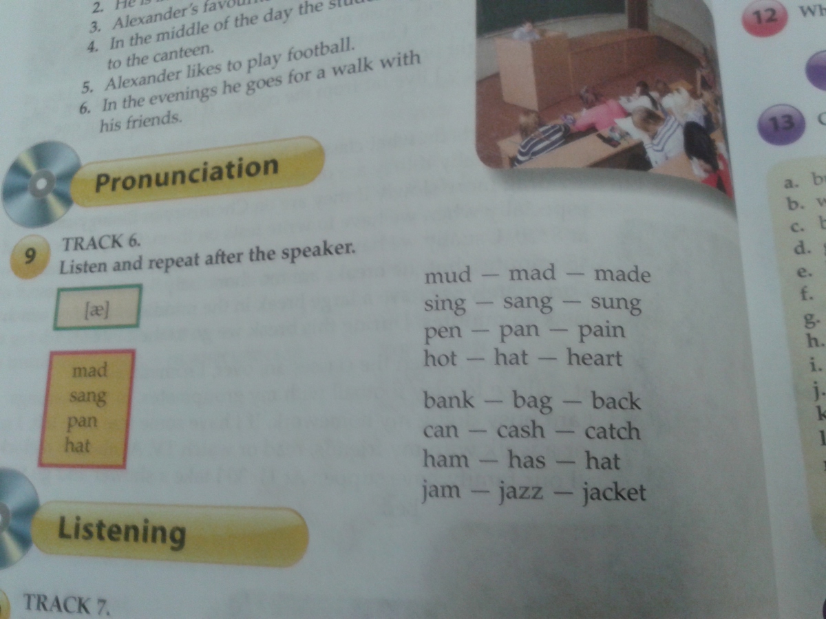 [æ]⇒⇒⇒mad [mæd] – sang [sæŋ] — pan [pæn] — hat [hæt] – bag [bæg] — back [bæk]--bank [bæŋk] --- can [kæn] — cash [kæʃ] — catch [kæʧ]---ham [hæm] - has [hæz]– hat ---[hæt]jam [ʤæm] – jazz [ʤæz] — jacket ['ʤækɪt]
