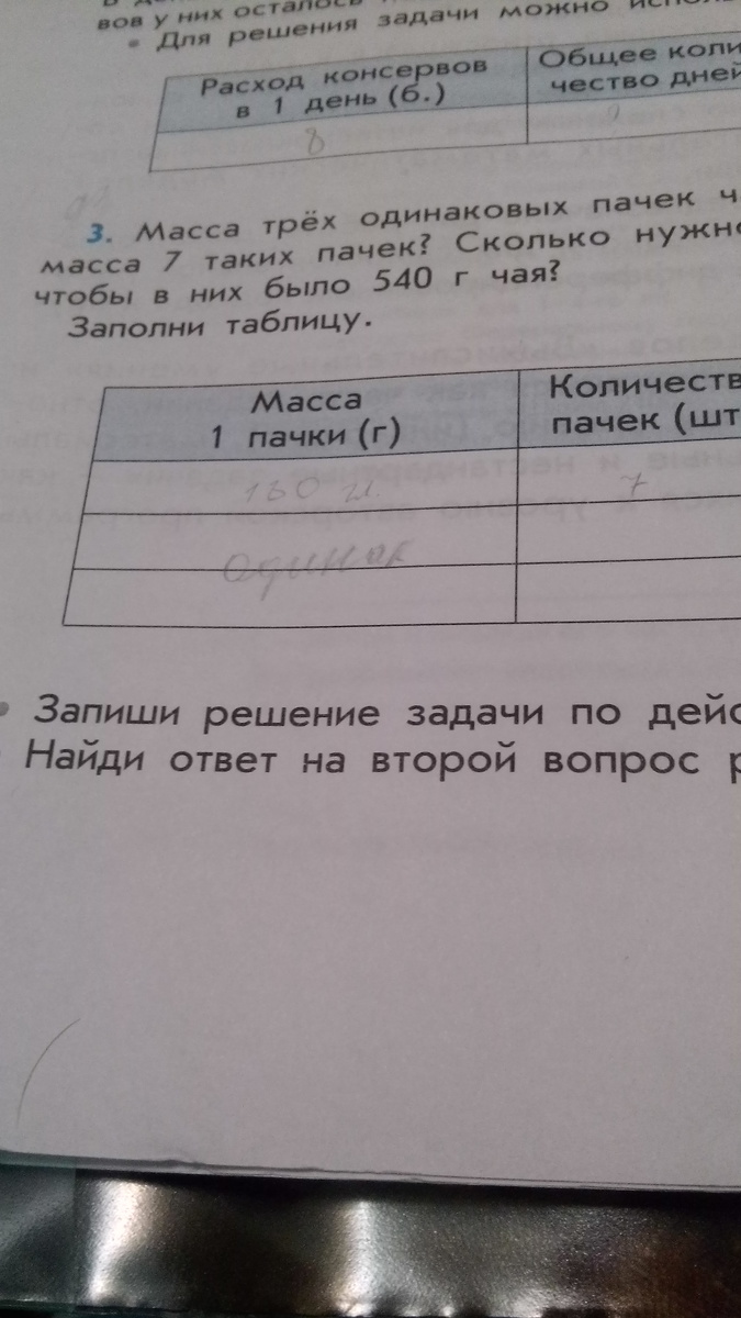 масса трех одинаковых пачек чая 180г.чему равно масса 7 таких пачек?сколько нужно купить таких пачек чтобы в них было 540г.чая