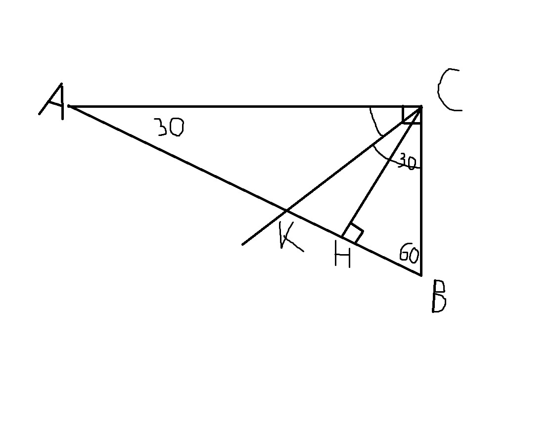 СН-высота => угол СНВ=90градусов=>угол НСВ=90-60=30 градусов