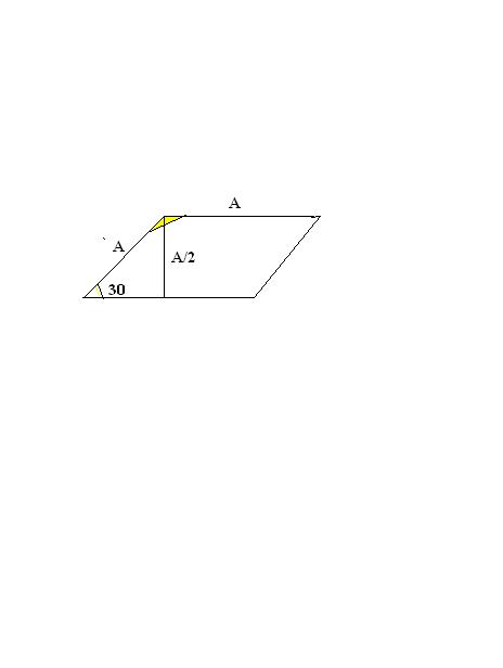 Против угла 30° лежит высота, равная половине стороны ромба.
