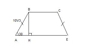 Боковая сторона равнобочной трапеции равна 10√3 см, а острый угол - 30 градусов. Найдите площадь этой трапеции, если известно, что в нее можно вписать окружность.