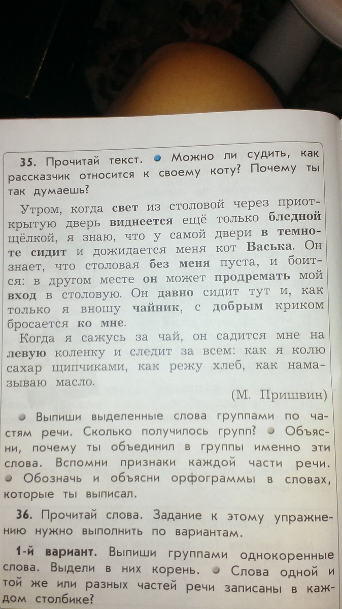 1. имя существительное: свет, темноте, Васька, вход, чайник;