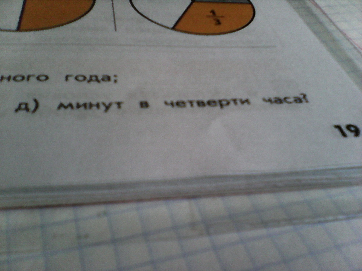 Один час 60 минут, значит чтоб узнать сколько минут в четверти часа надо: 60:4= 15