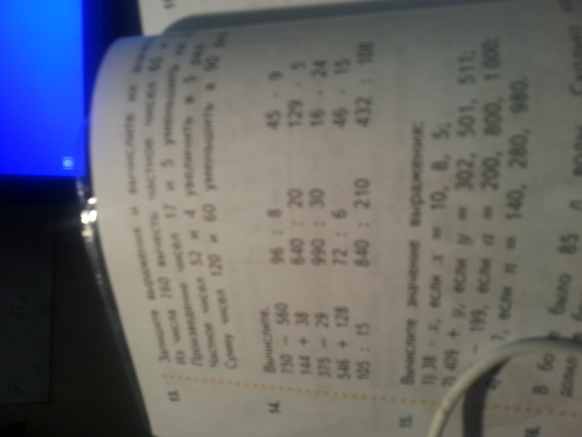 запиши выражения и вычислите их значения из числа 760 вычесть частное чисел 60 и 4. произведение чисел 17 и 5 уменьшить на 38. частное чисел 52 и 4 увеличить в 5 раз. сумму чисел 120 и 60 уменьшить в 90 раз.