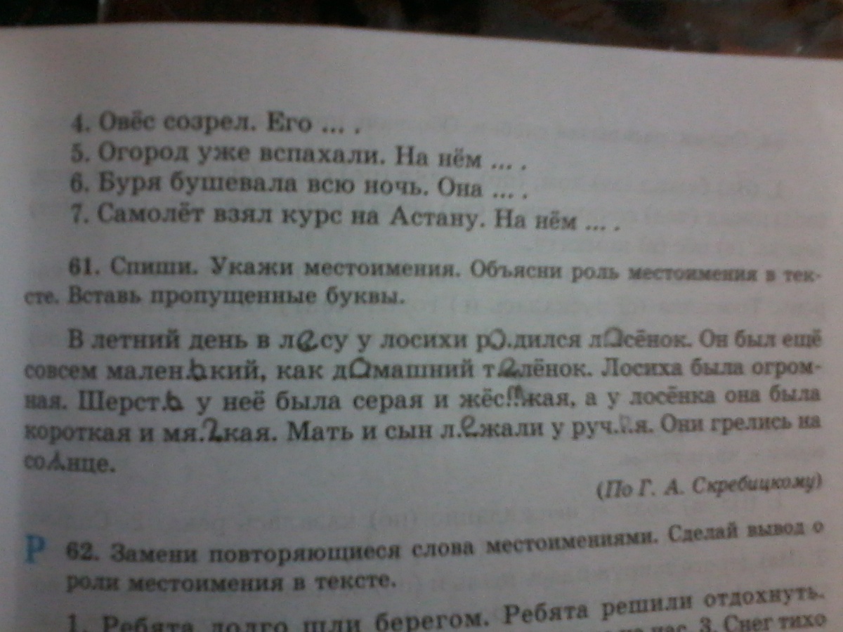В летний день в лесу у лосихи родился лосёнок. Он был еще совсем маленький, как домашний теленок. Лосихи была огромная. Шерсть у неё была серая и жесткая, а у лесенка она была короткая и мягкая. Мать и сын лежали у ручья. Они грелись на солнце.