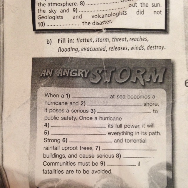 1 storm 2 reaches 3 threat 4 releases 5 destroy 6 winds 7 flatten 8 flooding 9 evacuated