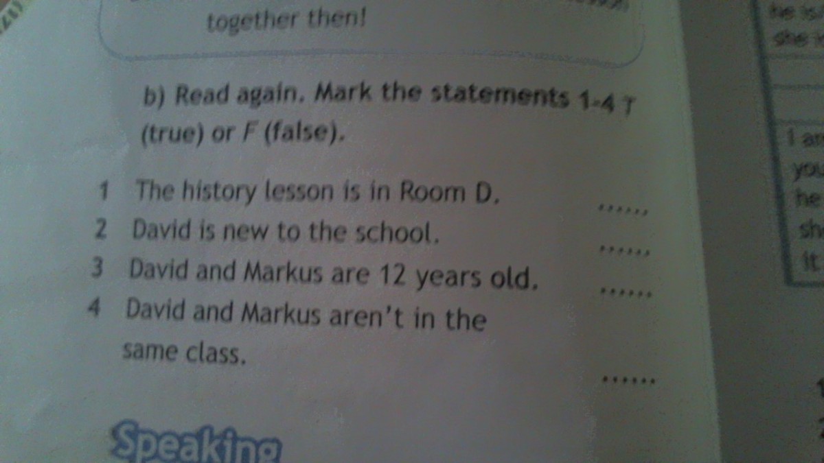 Во 2 нужно прочитать предложения и написать правда( true) это или ложь (false)