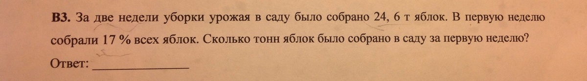 24,6*0,17=4,182т яблок собрали в первую неделю