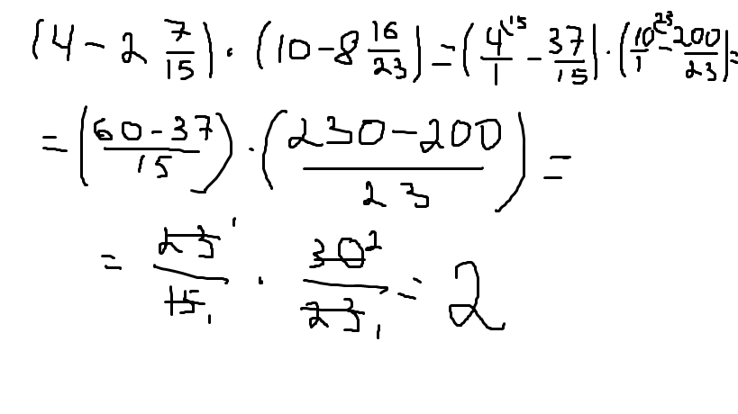 (4/1 - 37/15)*(10/1-200/23)=(60-37/15)*(230-200/23)= 23/15*30/23=2