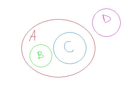 Построй диаграмму Венна множеств А,В,С и Д: А-это множество животных, В-множество тигров, С-множество носорогов, Д-множество деревьев,которые растут в зоопарке.