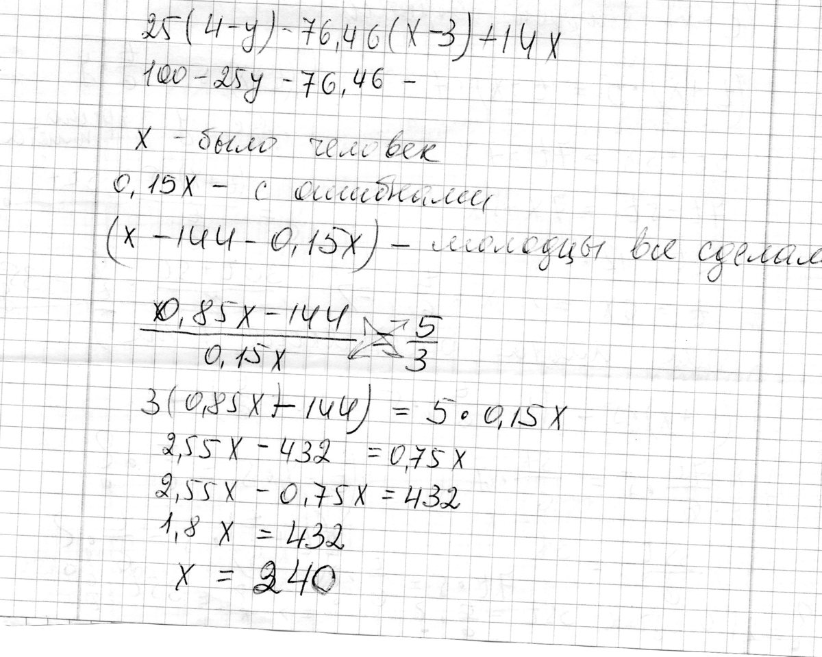 на экзамене по русскому языку 15% сделали ошибки, 144 человека ни с одним заданием не справились, а число абитуриентов, выполнивших всё, относится к числу сделавших с ошибками как 5:3. Сколько человек было на экзамене?