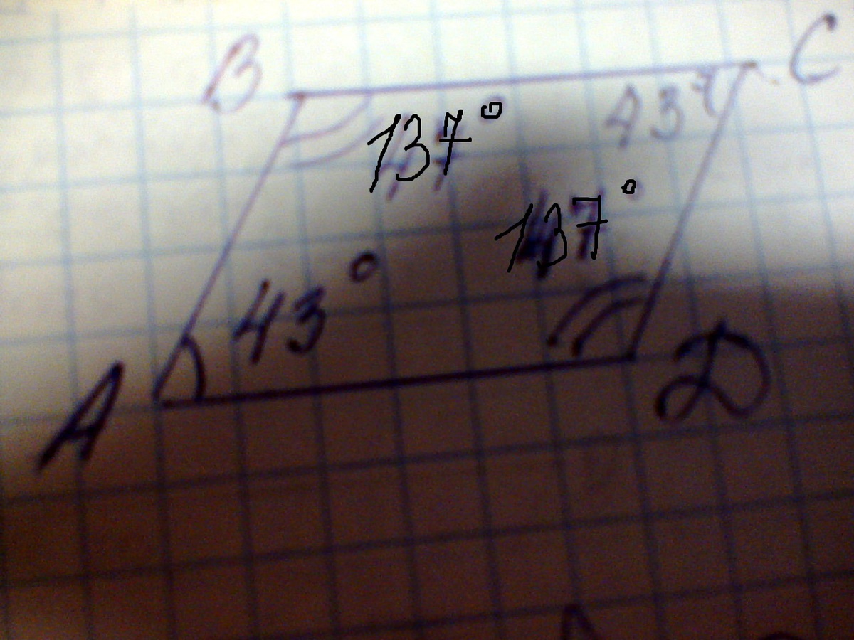 43 градуса, 137 градусов, 137 градусов(остальные углы)