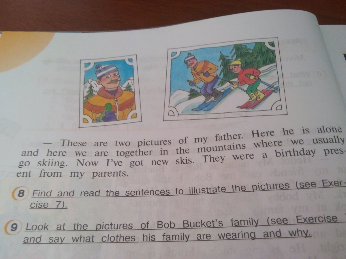Здесь две картинки моего папы . Здесь мы в горах где обычно катаемся на лыжах . Сейчас у меня новые лыжи . Их подарили на день рождение мои родители