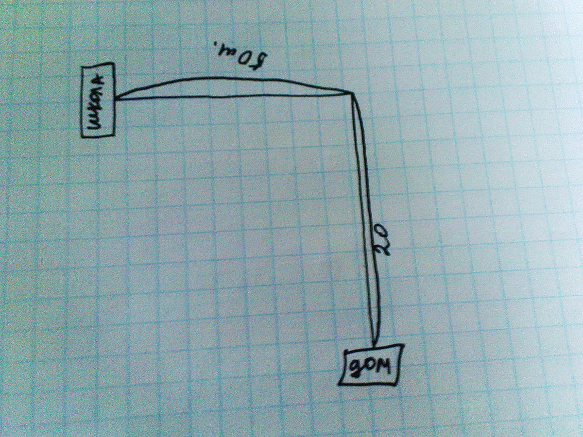 митя решил измерить дорогу от дома до школы.от дома до угла переулка,вкотором он жил,получилось 20 м,а по улице-ещё 50 м.сколько всего метров проходит митя от дома до школы? сделай к задаче схематический чертёж и реши её?
