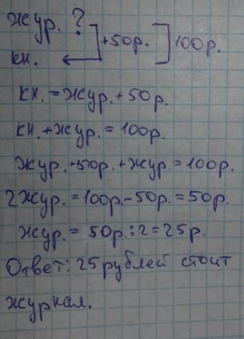 Ответ: 25 рублей цена журнала, 75 рублей цена книги.