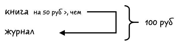 1) 100 - 50 = 50 (р) цена книги и журнала, если бы они стоили одинаково