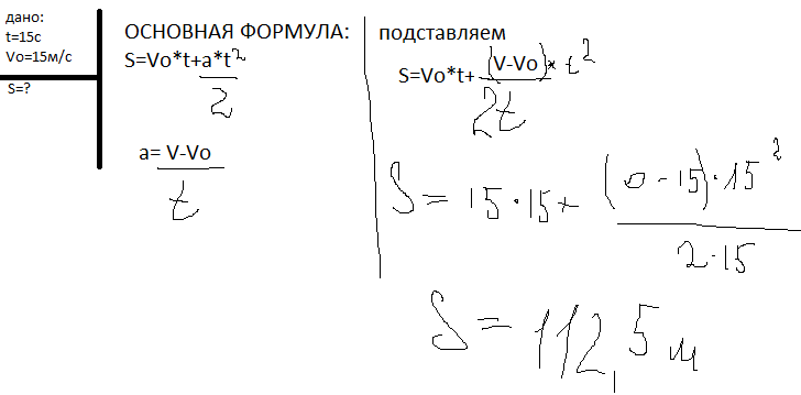 Автомобиль,движущийся со скоростью 54 км/ч , останавливается при торможении в течении 15 сек.Чему равен модуль перемещения автомобиля при торможении?