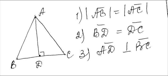 в равнобедренном треугольнике ABC на основание опущена высота AD.Укажите пары векторов: 1)модули которых равны; 2)которые равны между собой;3)которые взаимно перпендикулярны.
