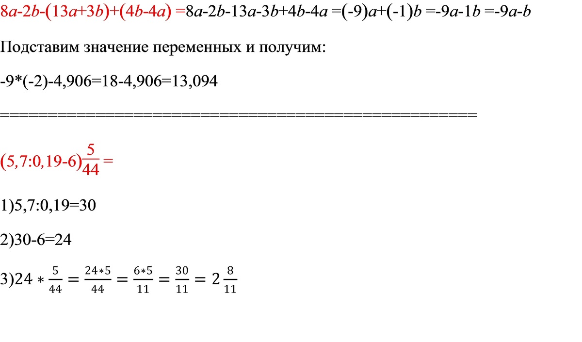 4)Упростите выражение 8a-2b-(13a+3b)+(4b-4a) и найдите его значение при a=-2, b=4,906