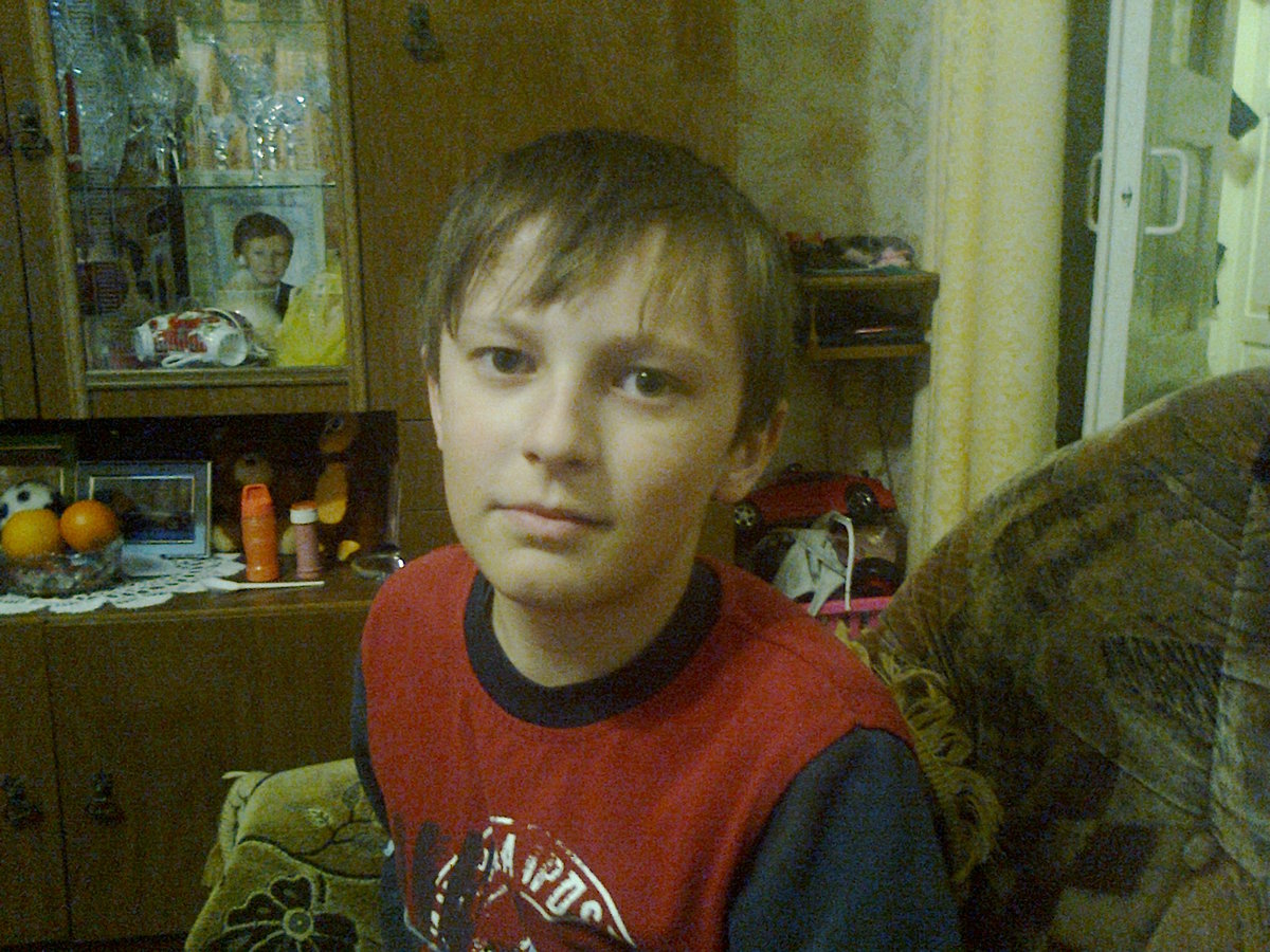 This boy is very handsome. He has got short straight fair hair and big brown eyes. His smile is nice. He is a friendly boy. His mouth is plump and his nose is turned up.