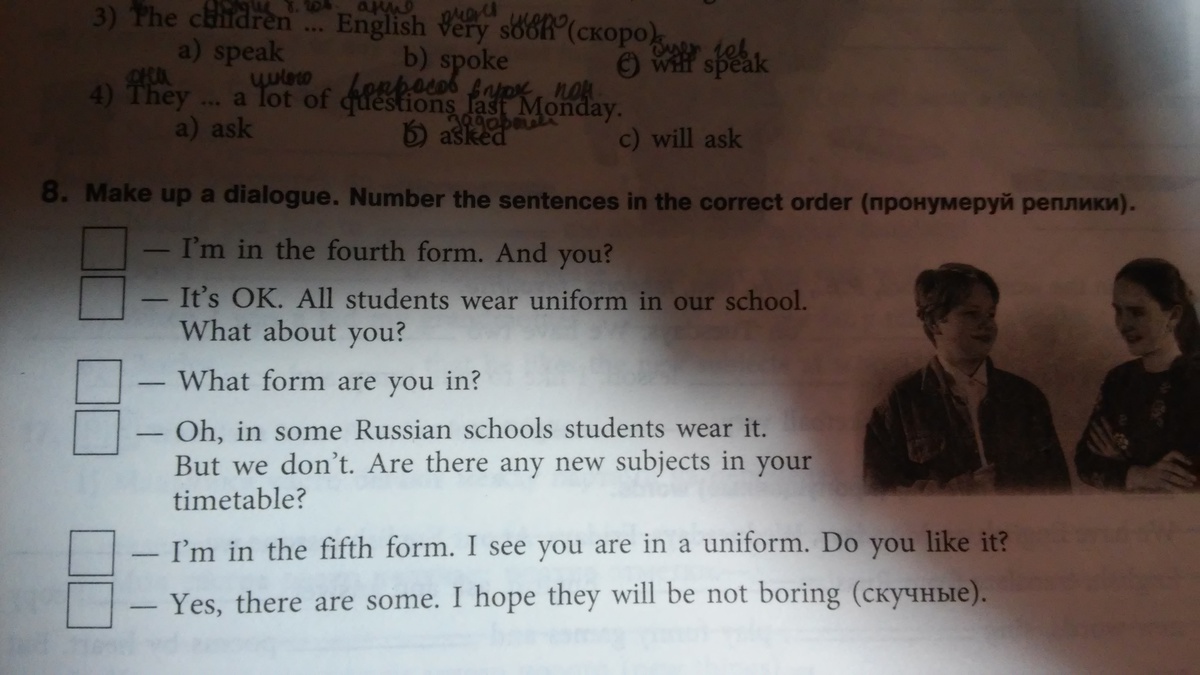 2) I'm in the fourth form. And you? - Я в четвёртой форме. А вы?