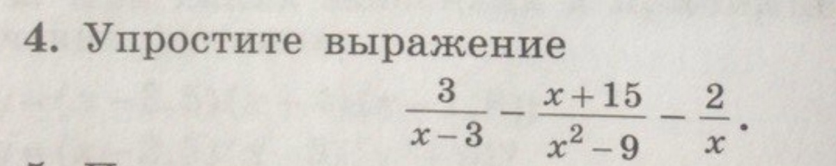 frac{3}{x-3}-frac{x+15}{x^2-9}-frac{2}{x}=frac{3}{x-3}-frac{x+15}{(x-3)(x+3)}-frac{2}{x}=\\