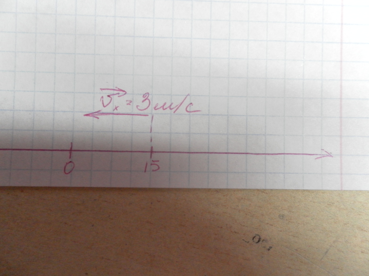 Итак, тело начало двигаться с начальной точки 15 со скоростью 3 м/с в противоположную сторону