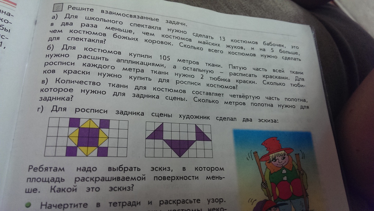 количество ткани для костюмов составляет четвертую часть полотна, которое нужно для задника сцены. сколько метров полотна нужно для задника сцены?