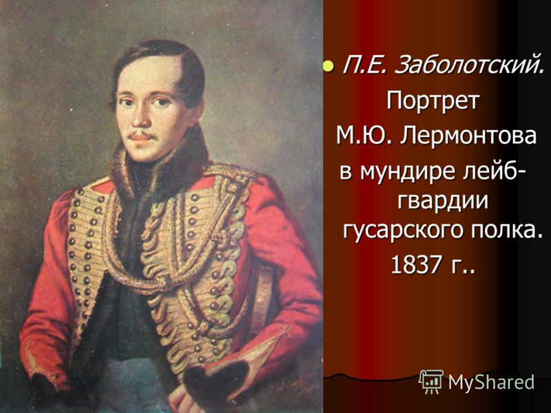 После окончания юнкерской школы М.Ю. Лермонтов надел офицерский мундир. Его бабушка, Арсеньева Е.А. (1773-1845), заказала его парадный портрет.Об этом портрете один из родственников поэта писал: «Можем свидетельствовать, что он… очень похож и один может дать истинное понятие о лице Лермонтова».Кто был этим художником?
