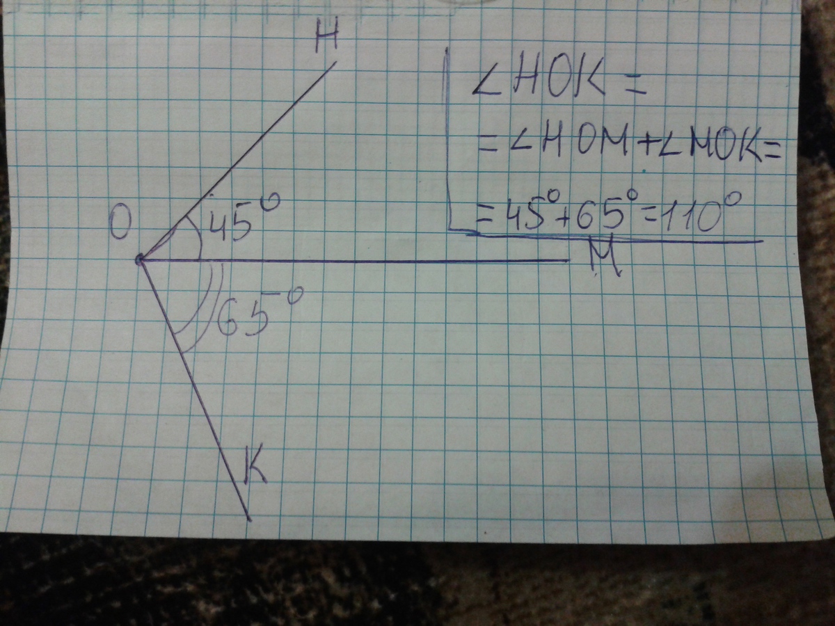 проведыть промынь ОМ . За допомогою транспортира по один бык выд променя ОМ побудуйте МОН, градусна мыра якого дорівнює 45 градусів, а по інший бік - кут МОК, градусна міра якого-65градусів. Чому дорівнює градусна міра кута НОК