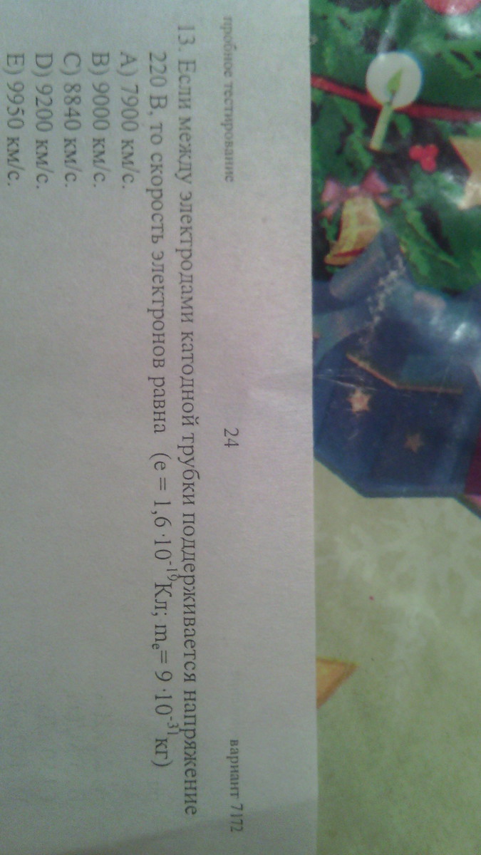 если между электродами катодной трубки поддерживается напряжение 220 В, то скорость электронов равна (е= 1,6*10 -19Кл; m8= 9*10. -31кг)