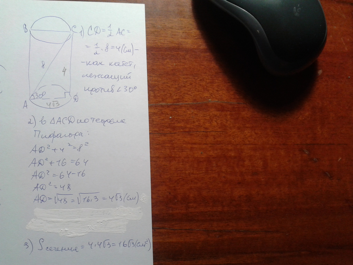 Діагональ осьового переріза циліндра дорівнює 8 см та утворює з площиною основи кут 30 .