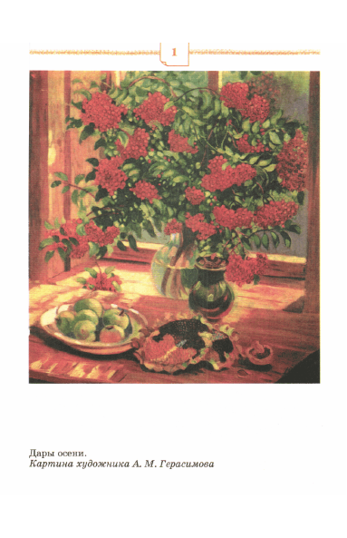 а) Описание центральной части картины (букет из спелой рябины в коричневой вазе у окна)