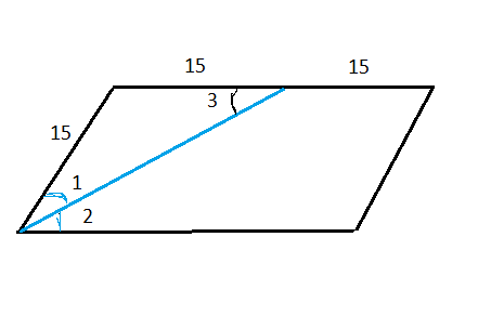 Одна сторона параллелограмма 15+15 = 30, вторая 15 см.