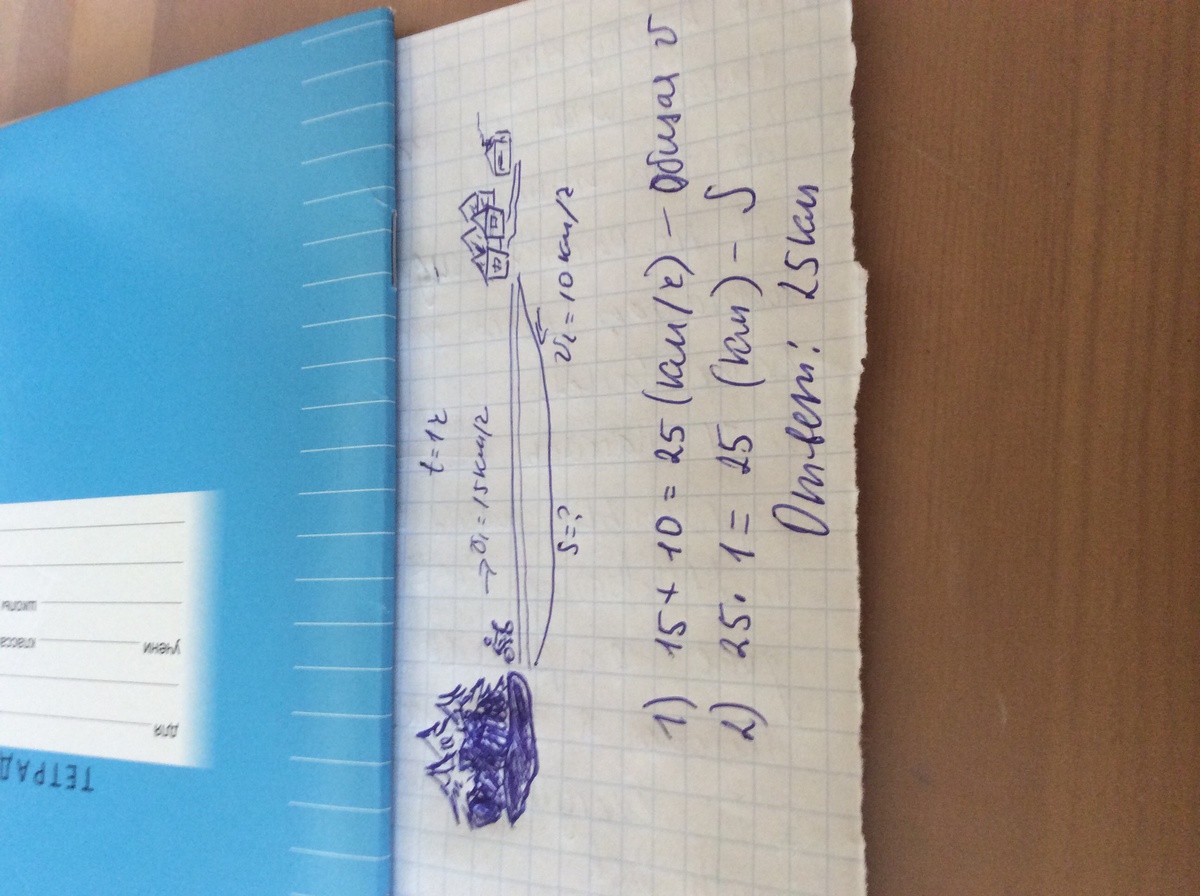 У меня так получилось. На фото решение и чертеж к задаче. Сначала находим общую скорость( сколько км/ ч он проехал туда и обратно вместе)- первое действие. Потом , зная общее время и общую скорость, находим расстояние- второе действие. Удачи!)
