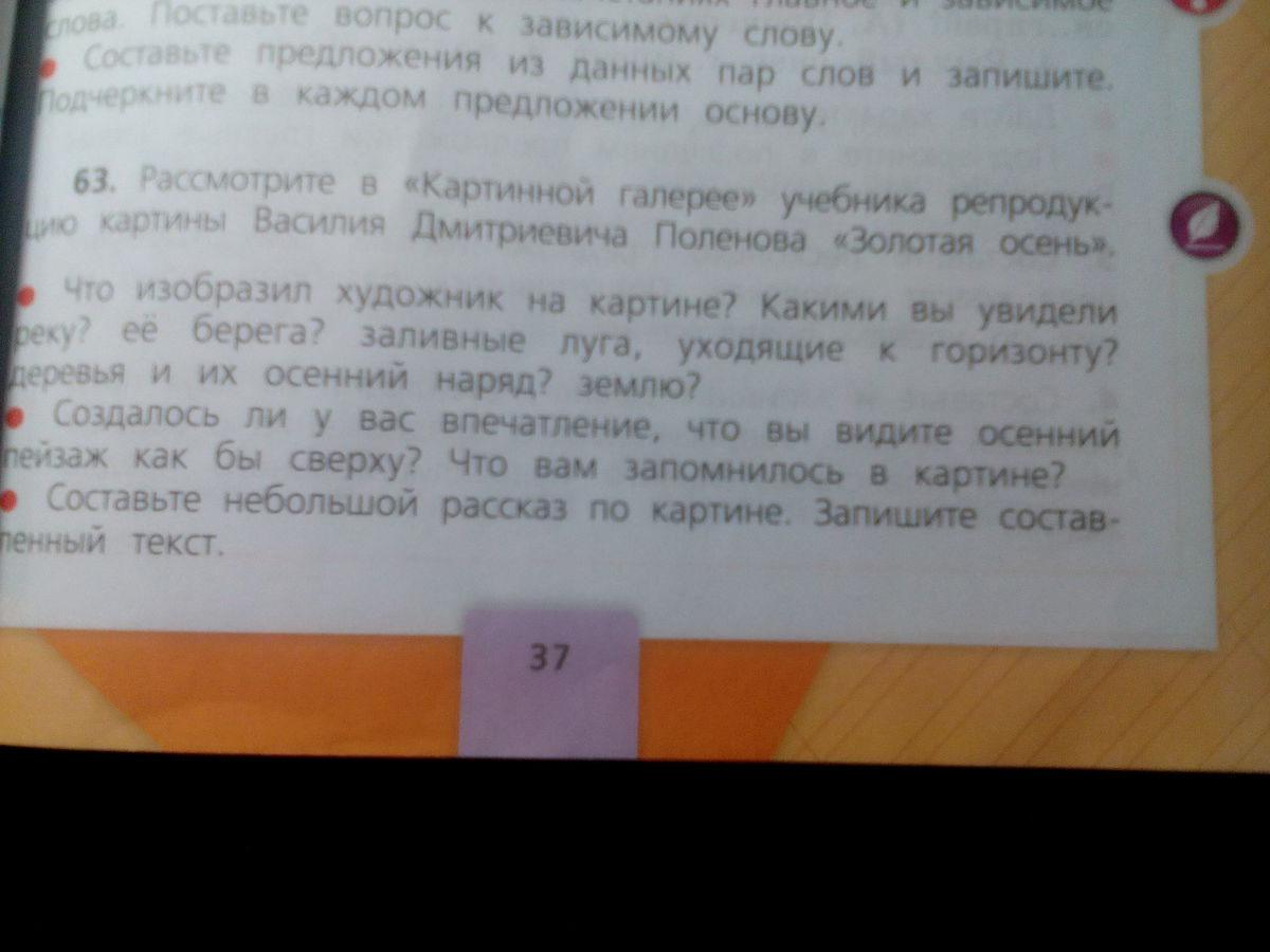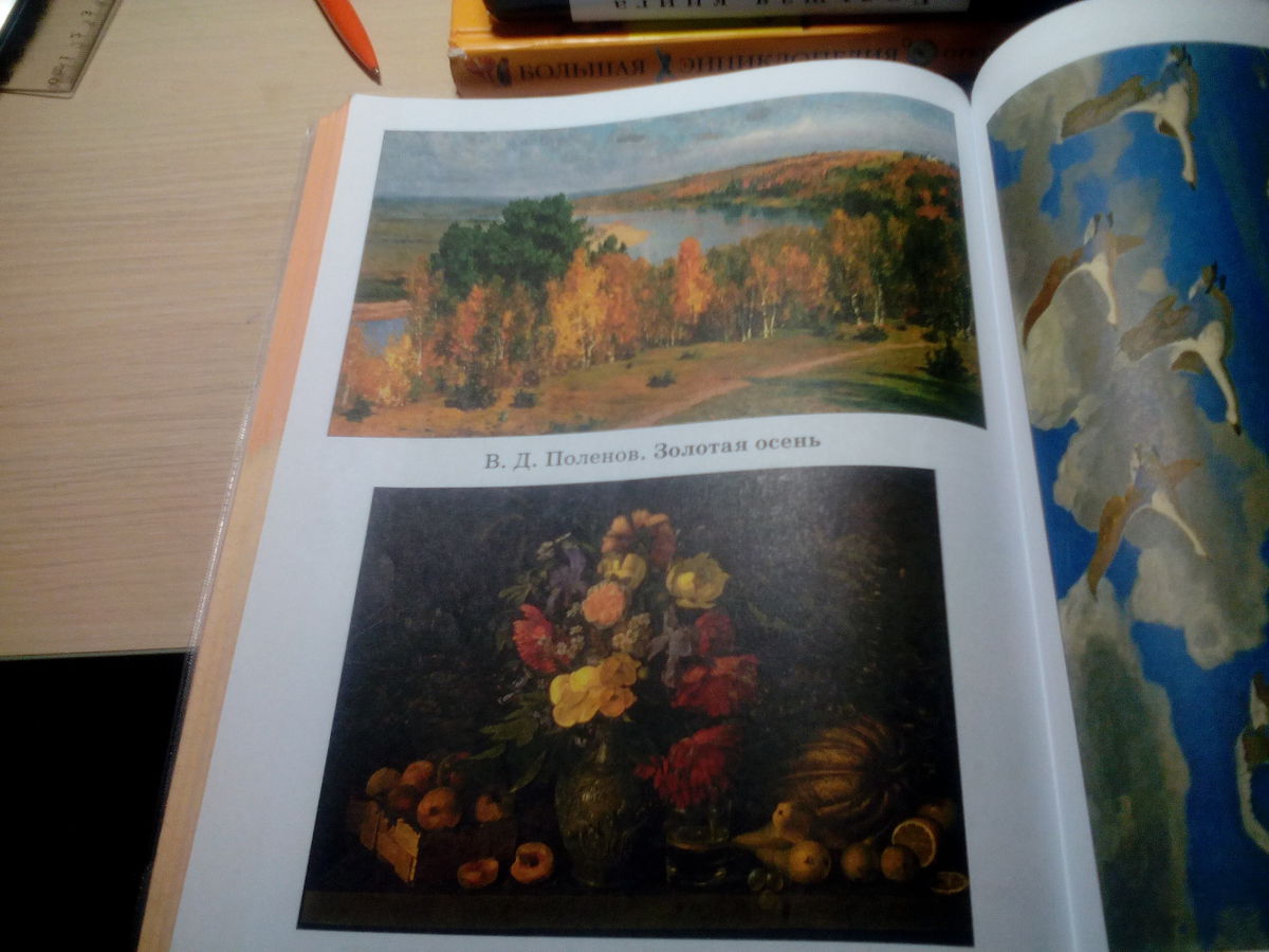 Стоит погожий осенний денек.В центре картины голубой лентой вьется река.В ней, как в зеркале, отражаются лазурная гладь небес и деревья, одетые в разноцветные наряды.Пожелтевшие листья, блестят в солнечных лучах, как золотые. Белоствольные березки заплели в свои косы яркие оранжевые ленты. Они будто стройные девушки, водят хоровод на солнечной полянке. Земля тоже надела золотистый наряд, лишь кое-где мелькают маленькие островки ещё зелёной травы Картина радостная, волшебная. Замечательная пора – золотая осень. Художник Поленов очень точно передал ее красоту. Очень хочется очутиться в этом месте: послушать шум реки, полюбоваться осенним нарядом деревьев, погреться под лучами ласкового и игривого солнышка.